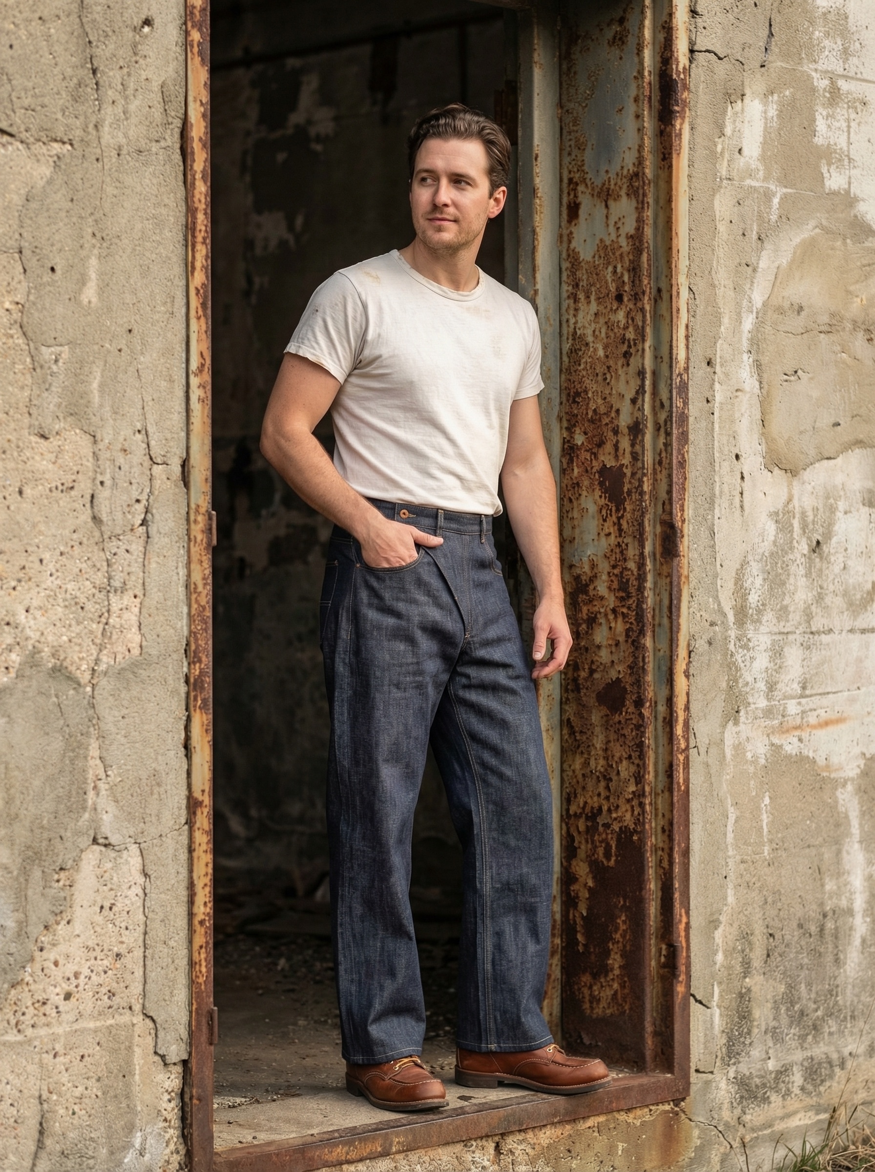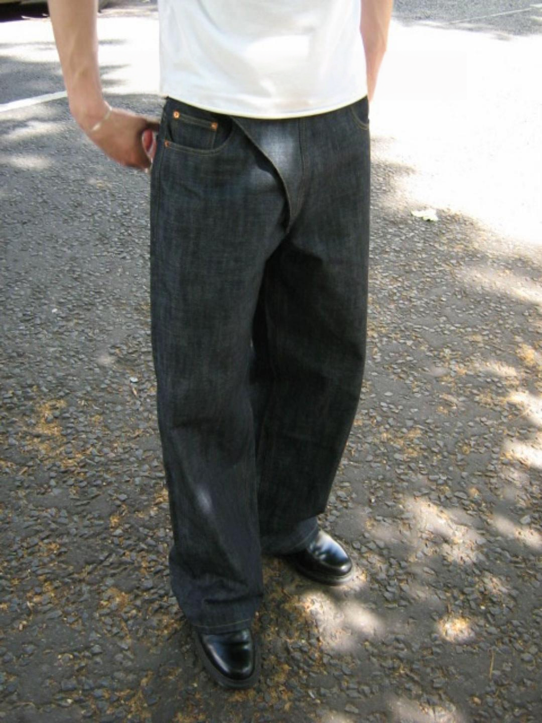 A distinctive take on classic denim. Designed with a curved front seam and relaxed wide-leg silhouette, these jeans create natural volume while maintaining a clean, structured look.