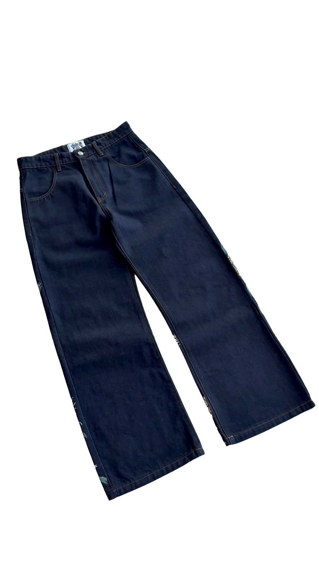 EDO LANDSCAPE EMBROIDERED WIDE-LEG JEANS